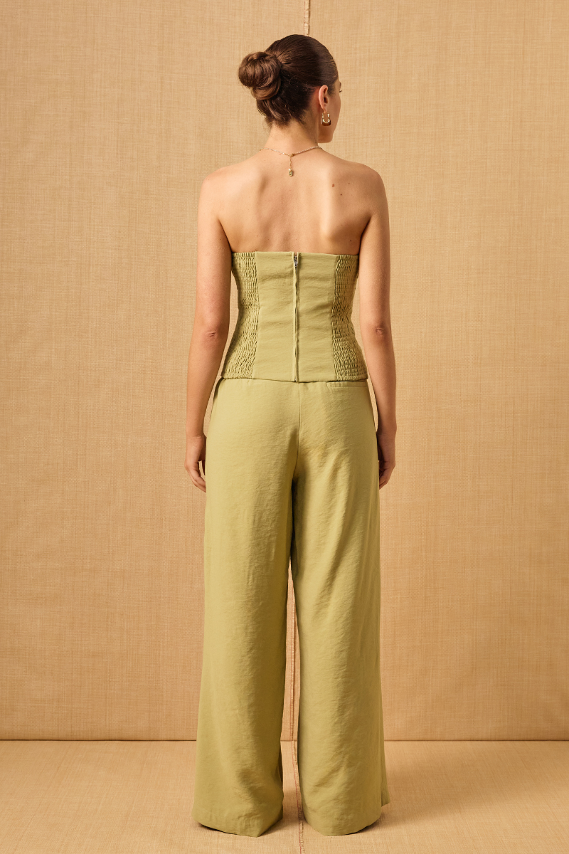- Blended woven fabrication - Strapless cupped bustier - Skimming fit - Elasticated back bodice panels for adjustability - Open-ended metal zipper closure at centre back - Fully lined - Designed to pair back with Scenic pant