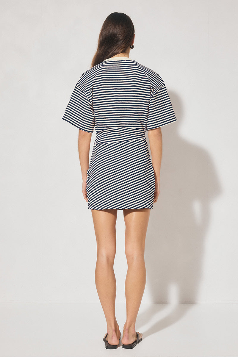 Aura Mini Dress Navy Cream Stripe